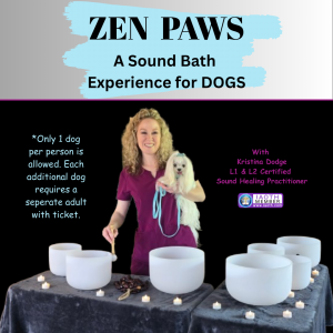 Kristina Dodge is our Level 2 Certified Sound Healing Practitioner who offers crystal singing bowl sound baths for pets and their people. Her sessions support nervous system regulation and cellular healing through guided visualizations and soothing frequencies.